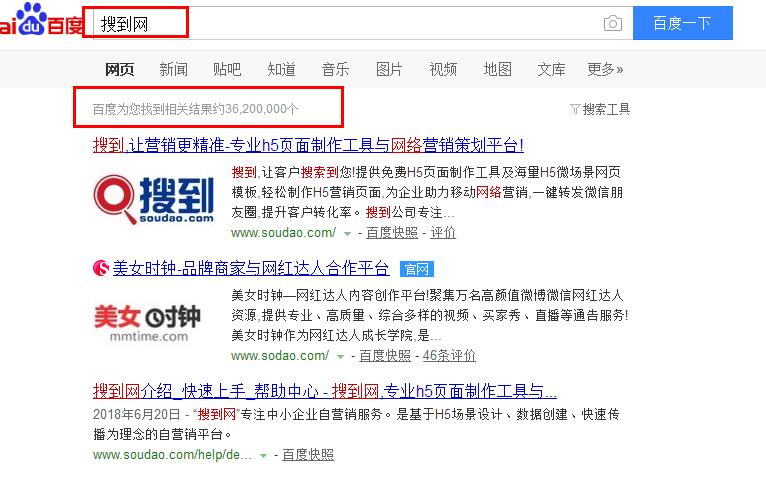 关键词搜索结果页面上都会显示这个关键词返回的相关页面总数,这个结果数是搜索引擎经过计算认为与搜索词相关的所有页面,也就是参与这个关键词竞争的所有页面。
